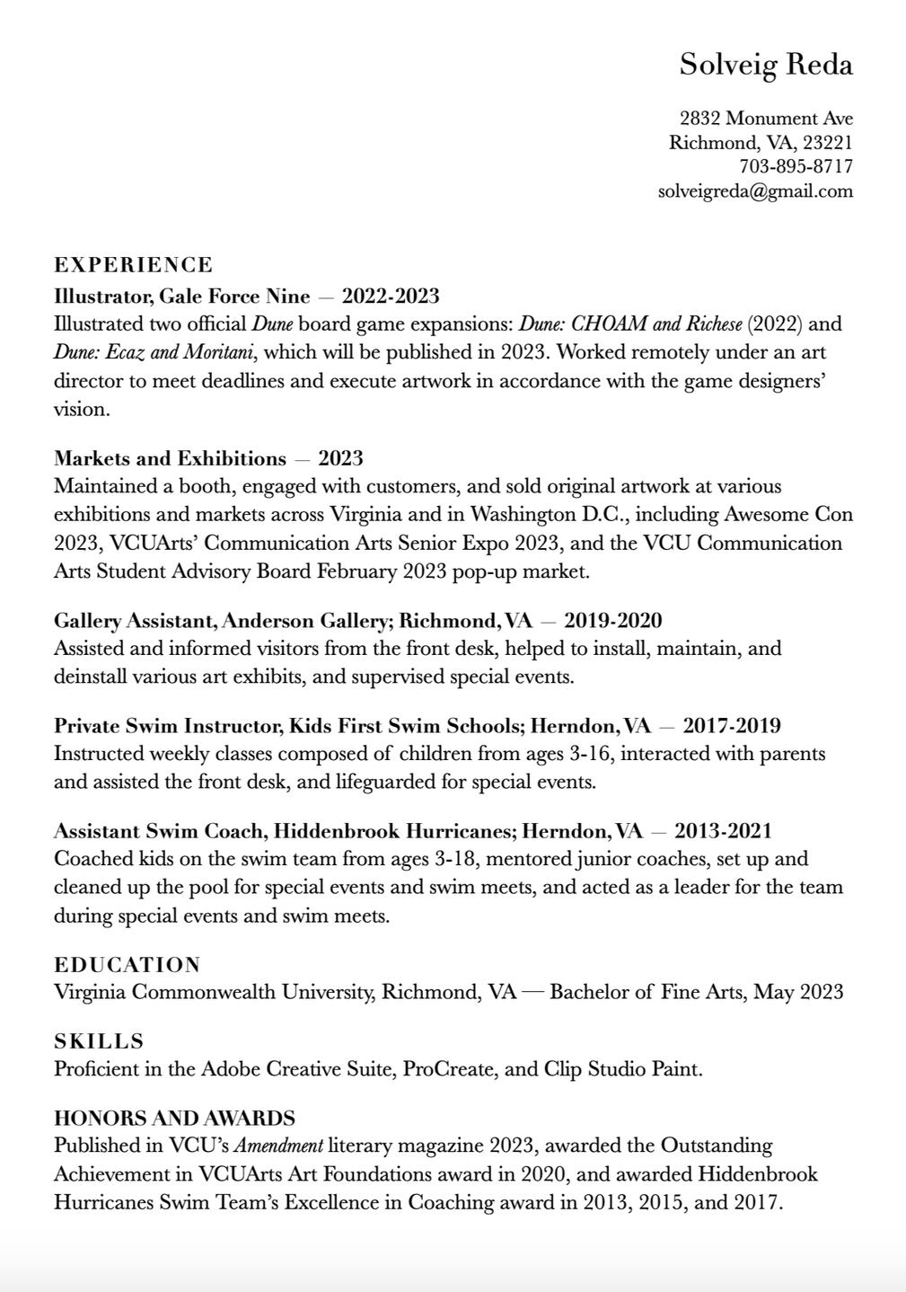 Solveig Reda is an illustrator and concept artist, graduated from VCUArts with a BFA in Communication Arts in May 2023. She has a passion for character art and design, fashion, and fantasy, and illustrated two official Dune expansions for Gale Force Nine in 2022 and 2023.For illustration work, please contact at [email protected]..